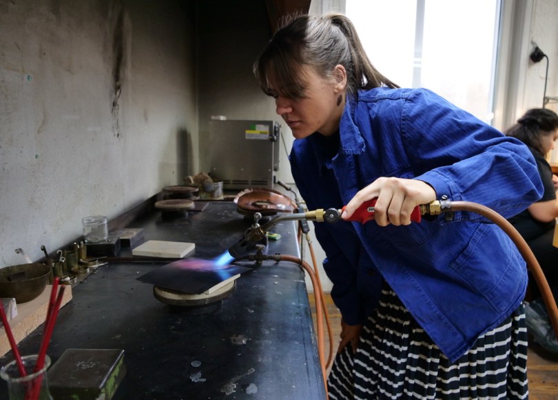 – Det är sällan man går direkt från en gymnasieutbildning in på en konst- eller designhögskoleutbildning. Man behöver öva på både teknik och process först. Vi har materialbaserade utbildningar inom textil, metall och trä. Runt 80 procent av våra studenter går vidare till högre studier, säger Johanna Djurberg, Biträdande verksamhetsledare på Steneby.